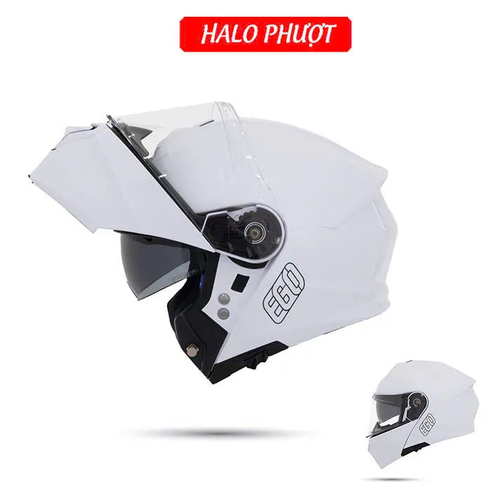 - - Thương hiệu: EGO Helmet - Khối lượng: 1.450 ± 50 gram (không bao gồm phụ kiện) - Loại nón: Lật hàm 2 kính - Chất liệu vỏ: Nhựa ABS nguyên sinh - Chất liệu mút xốp: EPS chịu lực - Size: M L XL - XXL - Kính chắn: Kính ngoài trong suốt, kính âm bên trong màu đen - Đạt tiêu chuẩn QCVN, ECE (châu Âu) và cả DOT (Mỹ) - Bảo hành: 24 tháng lỗi kỹ thuật - Tặng kèm 1 túi đựng nón chính hãng + 1 thùng + khóa chống trộm
