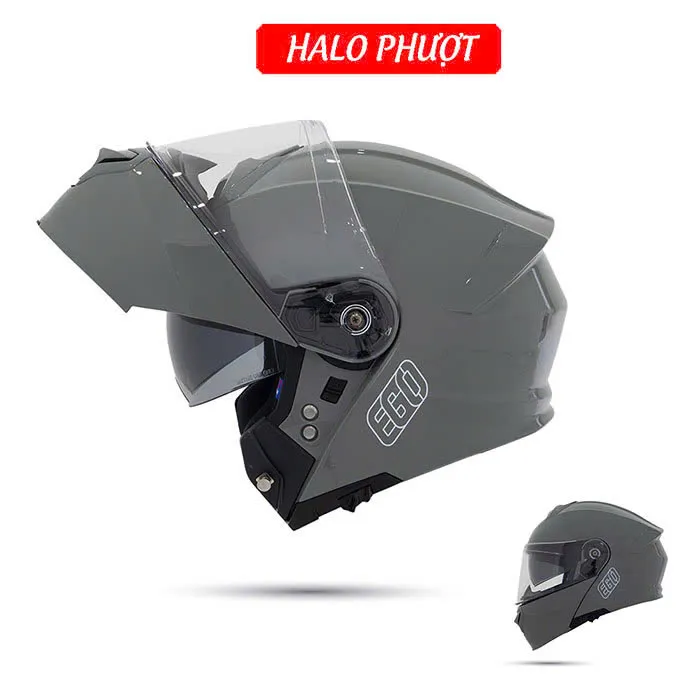 - - Thương hiệu: EGO Helmet - Khối lượng: 1.450 ± 50 gram (không bao gồm phụ kiện) - Loại nón: Lật hàm 2 kính - Chất liệu vỏ: Nhựa ABS nguyên sinh - Chất liệu mút xốp: EPS chịu lực - Size: M L XL XXL - Kính chắn: Kính ngoài trong suốt, kính âm bên trong màu đen - Đạt tiêu chuẩn QCVN, ECE (châu Âu) và cả DOT (Mỹ) - Bảo hành: 24 tháng lỗi kỹ thuật - Tặng kèm 1 túi đựng nón chính hãng + 1 thùng + khóa chống trộm