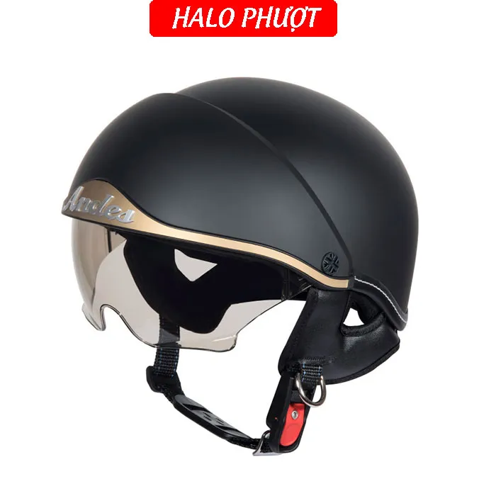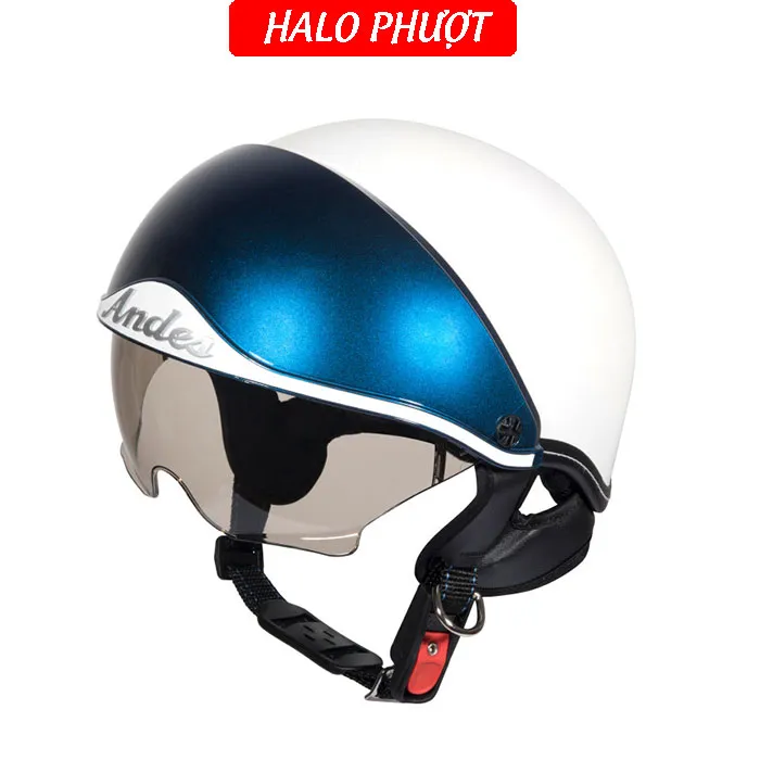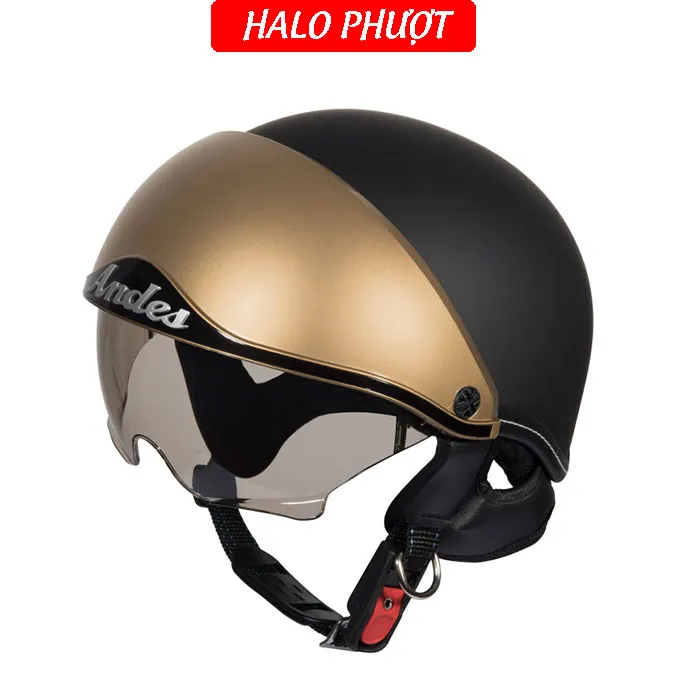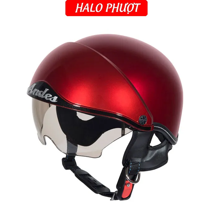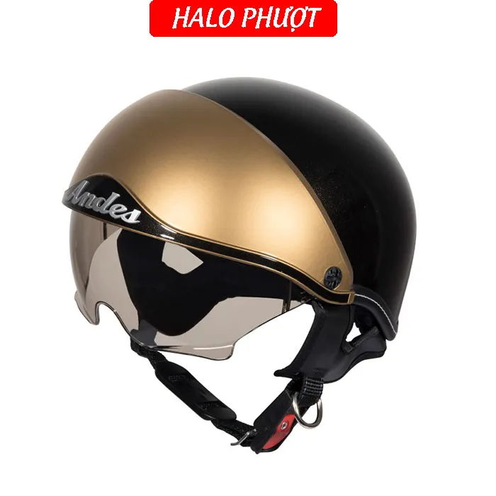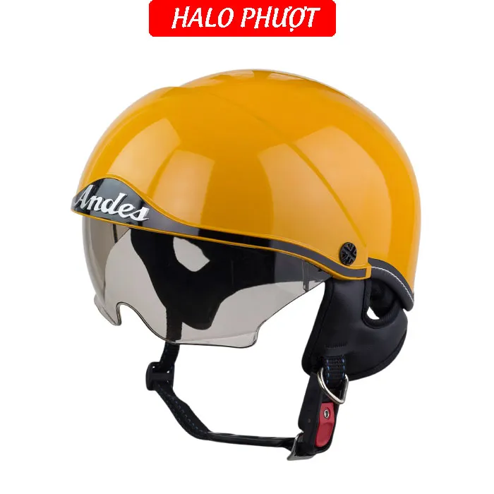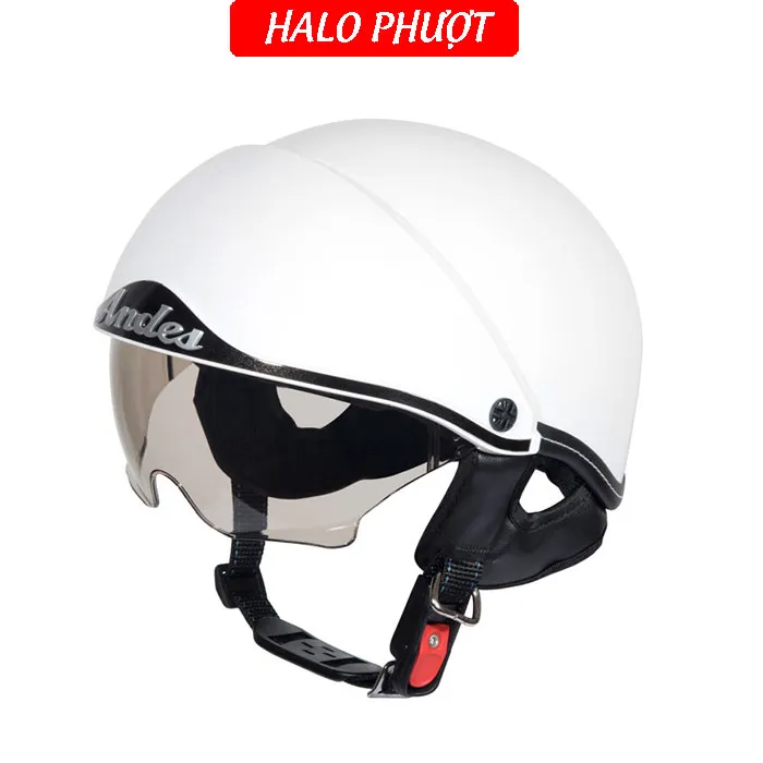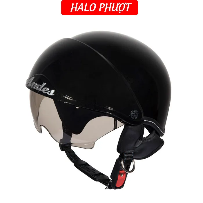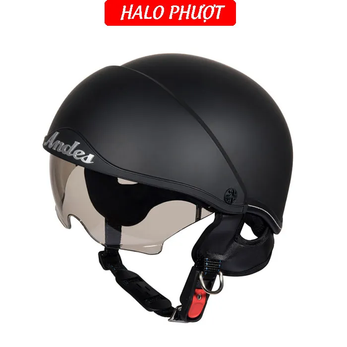 - Thương hiệu: ANDES Helmet Khối lượng: 750 ± 50g Chất liệu vỏ: Nhựa ABS nguyên sinh Chất liệu mút xốp: EPS chịu lực Size: nón nửa đầu chỉ có 1 size cho vòng đầu 5457cm Kính chắn: làm từ nhựa ABS chống tia UV Kính giấu bên trong nón, khi không dùng ẩn kính để hạn chế trầy xước Đạt tiêu chuẩn: Quacert Bảo hành: trọn đời lỗi kỹ thuật Ship hàng toàn quốc