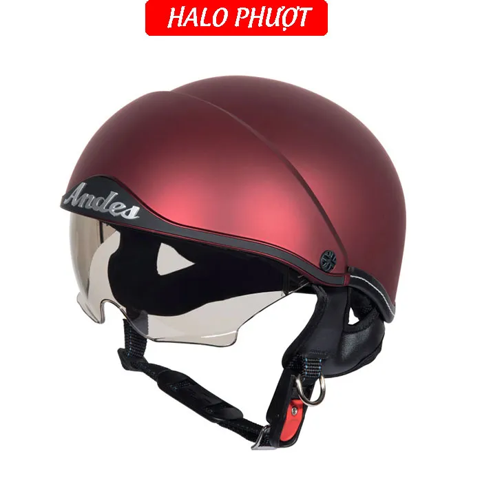 - - Thương hiệu: ANDES Helmet - Khối lượng: 750 ± 50g - Chất liệu vỏ: Nhựa ABS nguyên sinh - Chất liệu mút xốp: EPS chịu lực - Size: nón nửa đầu chỉ có 1 size cho vòng đầu 5457cm - Kính chắn: làm từ nhựa ABS chống tia UV - Kính giấu bên trong nón, khi không dùng ẩn kính để hạn chế trầy xước - Đạt tiêu chuẩn: Quacert - Bảo hành: trọn đời lỗi kỹ thuật - Ship hàng toàn quốc