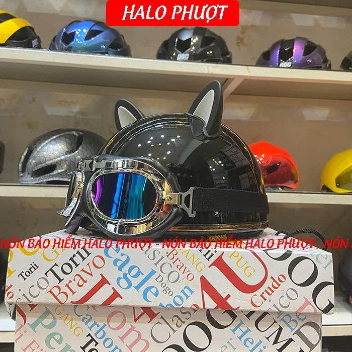 - Mũ Bảo Hiểm 3/4 Bulldog Corgi Có Mái Che Màu Xước Đồng