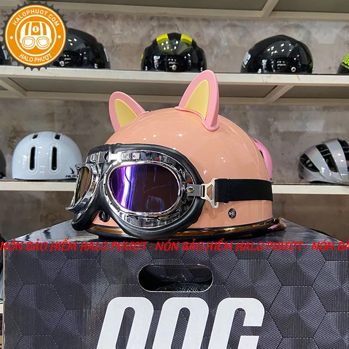 - Mũ Bảo Hiểm 3/4 EGO E-31 E31 Có Kính Hồng Pastel