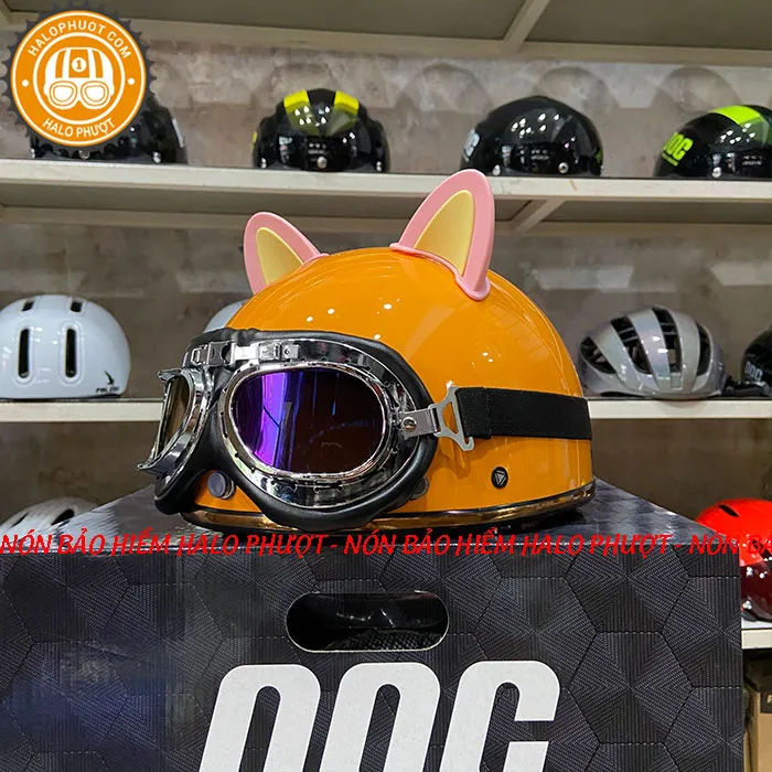 - Mũ Bảo Hiểm 3/4 Bulldog Corgi Có Mái Che Màu Vàng