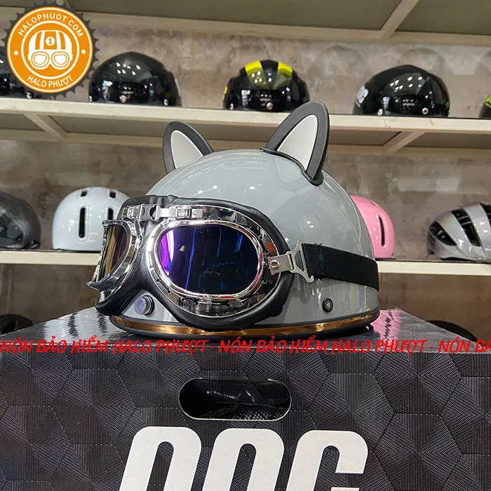 - (Tặng Tai Mèo) Nón Nửa Đầu Kính Âm Royal M239 Xám Sáng Light Grey