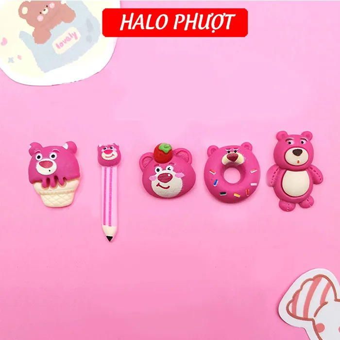 - - Set 8 charm gấu dâu (5 mẫu nên sẽ có 3 charm trùng) - Sản phẩm đã bao gồm keo dán - Có thể dán để trang trí cho nón bảo hiểm, tủ lạnh, điện thoại, laptop, xe đạp, xe máy..... - Vệ sinh sạch bề mặt trước khi dán sẽ giúp keo dính chắc và lâu hơn