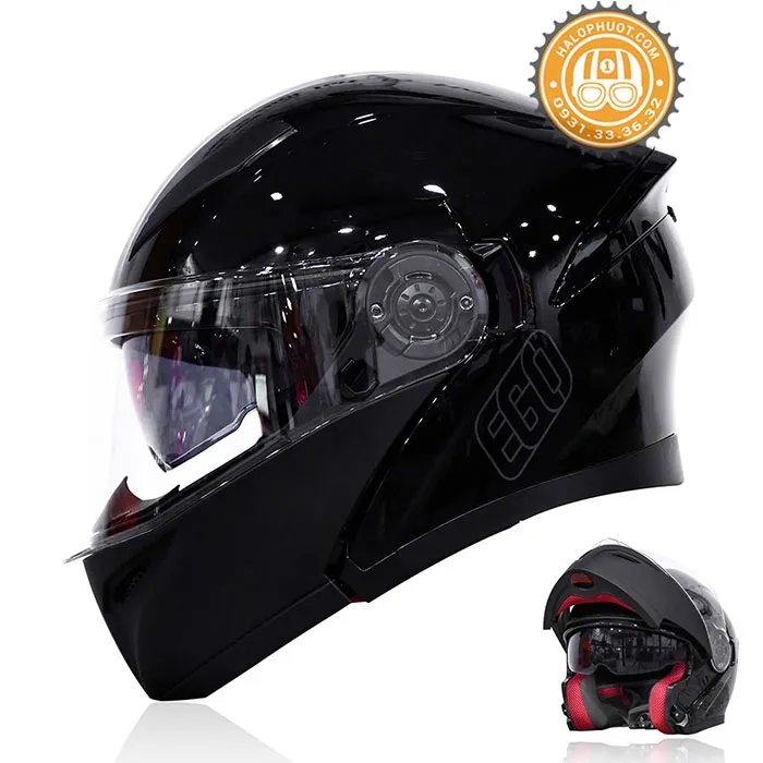 - - Thương hiệu: EGO Helmet - Khối lượng: 1.50 ± 50 gram - Loại nón: Fullface lật hàm - Kính: 2 kính - Lót: có thể tháo rời - Chất liệu vỏ: Nhựa ABS nguyên sinh - Chất liệu mút xốp: EPS chịu lực - Khóa: Micro lock - Size: M (5355cm) L (5657cm) XL (58-59cm) - Kính chắn: kính ngoài màu trong suốt đi được ngày đêm, kính trong màu khói chống nắng - Đạt tiêu chuẩn QCVN - Bảo hành: 24 tháng lỗi kỹ thuật (trừ phụ kiện) - Tặng kèm 1 túi đựng nón chính hãng + 1 thùng