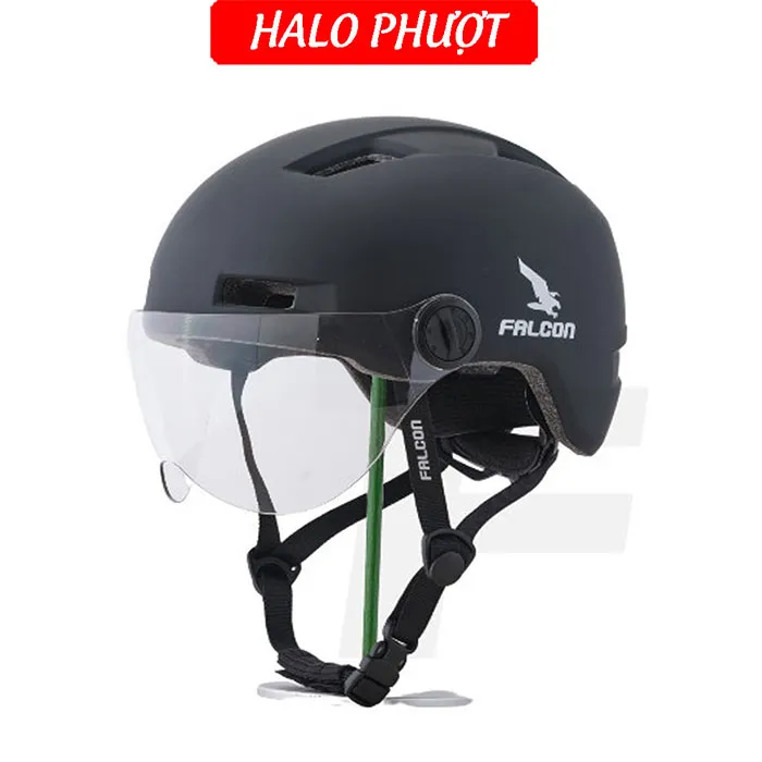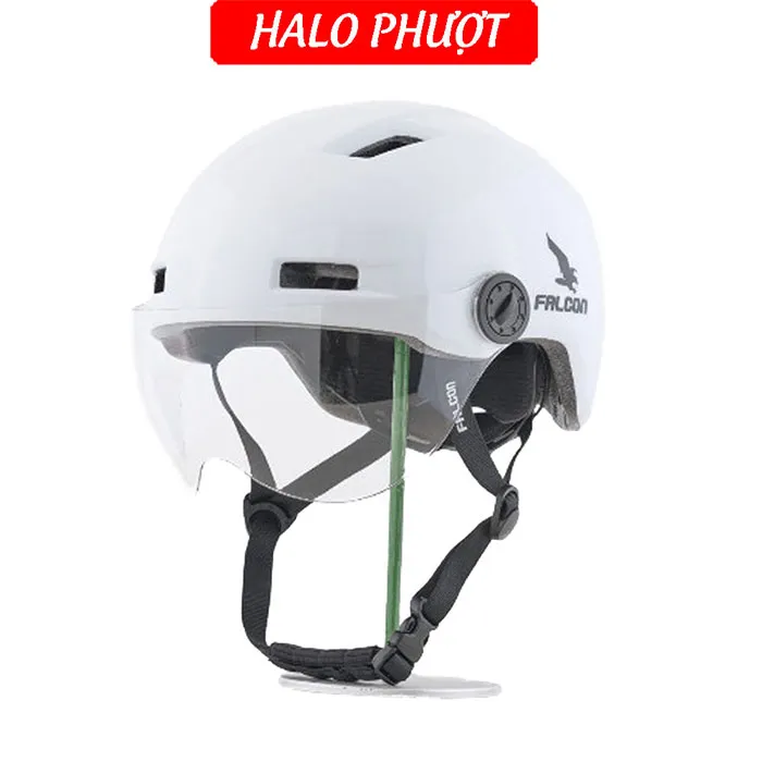 - - Thương hiệu: Falcon Helmet (chung Công ty với POC Helmet) - Khối lượng: rất nhẹ ~300gr - Kính: nón có sẵn kính nửa mặt - Vật liệu: vỏ polycarbonate và lót EPS nguyên sinh - Có con lăn sau nón để điều chỉnh size - Lót nón: vải kháng khuẩn có thể tháo rời - Size: Freesize cho vòng đầu 5660cm - Chứng nhận CE EN 1078 - Bảo hành: 12 tháng dây quai - Tặng kèm 1 túi đựng nón