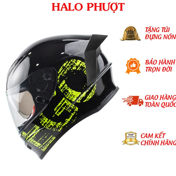 - - Thương hiệu: EGO Helmet - Khối lượng: 1.250 ± 50 gram - Loại nón: Fullface liền hàm - Kính: 2 kính - Chất liệu vỏ: Nhựa ABS nguyên sinh - Chất liệu mút xốp: EPS chịu lực - Khóa: Micro lock - Size: M (5355cm) L (5657cm) - XL (58-59cm) - Kính chắn: kính ngoài màu trong suốt đi được ngày đêm, kính trong màu khói chống nắng - Đạt tiêu chuẩn QCVN - Bảo hành: 24 tháng lỗi kỹ thuật (trừ phụ kiện) - Tặng kèm 1 túi đựng nón chính hãng + 1 thùng