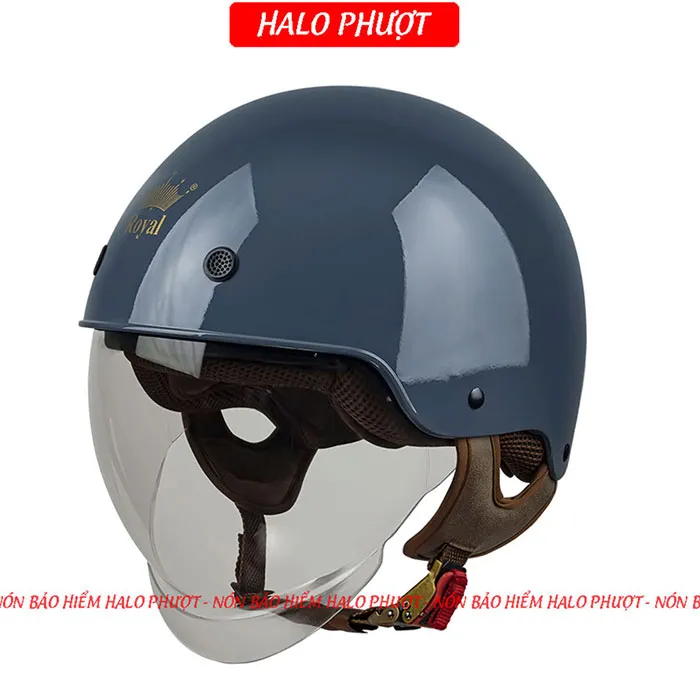 - (Tặng Tai Mèo) Nón Nửa Đầu Kính Âm Royal M239 Xám Sáng Light Grey